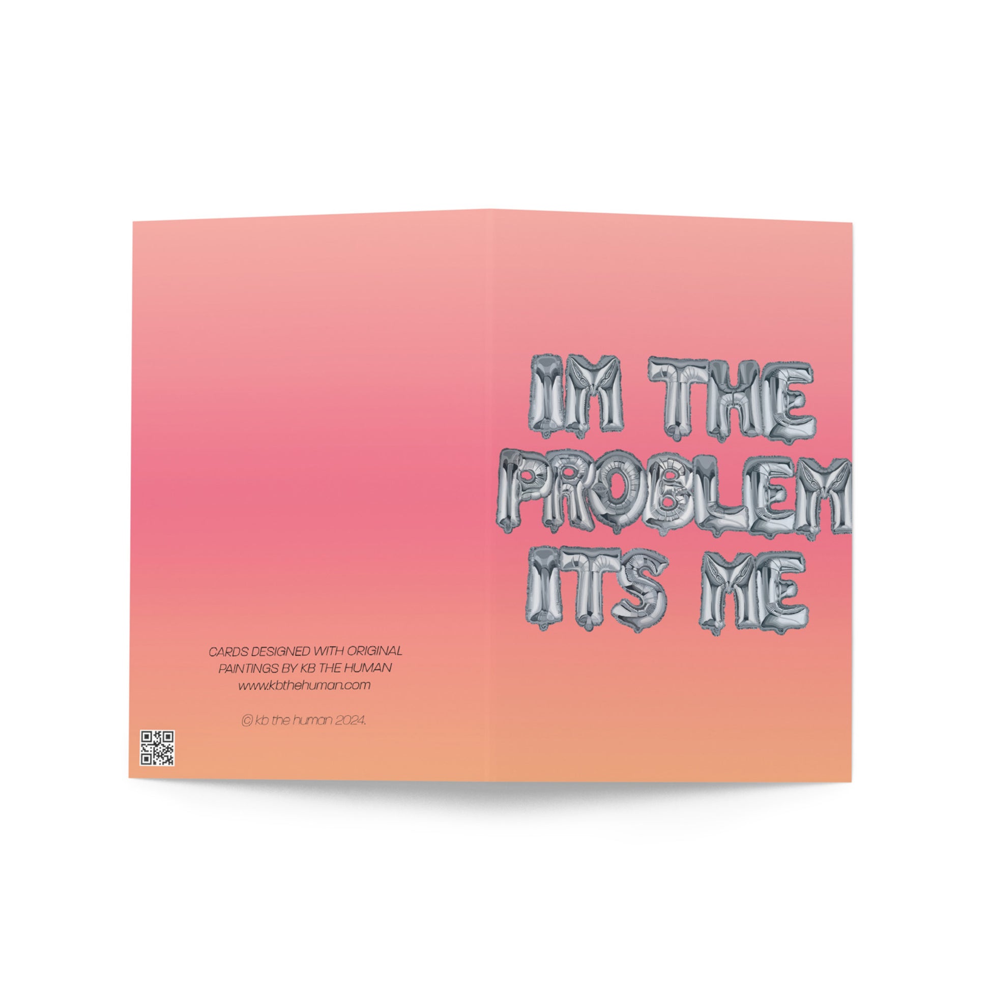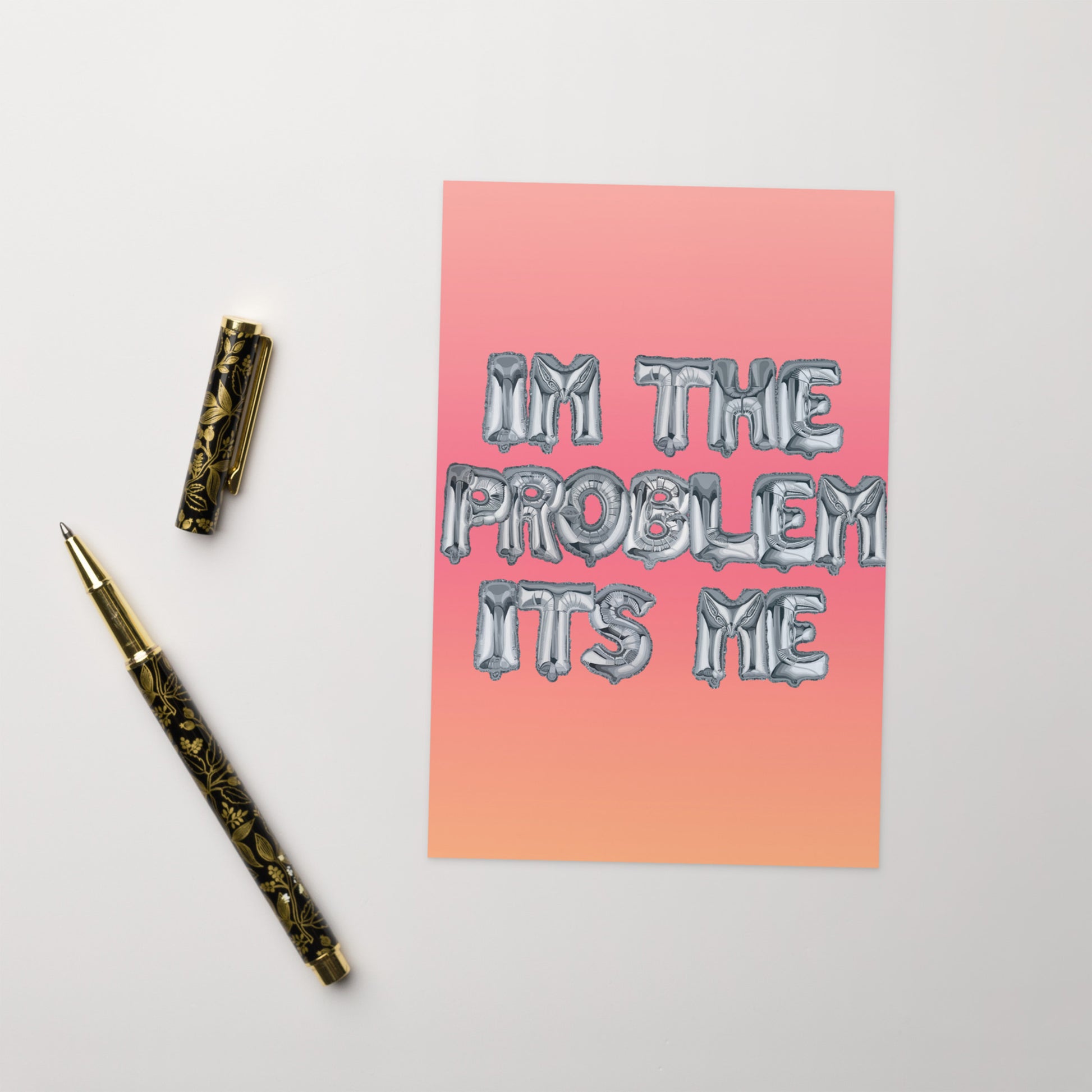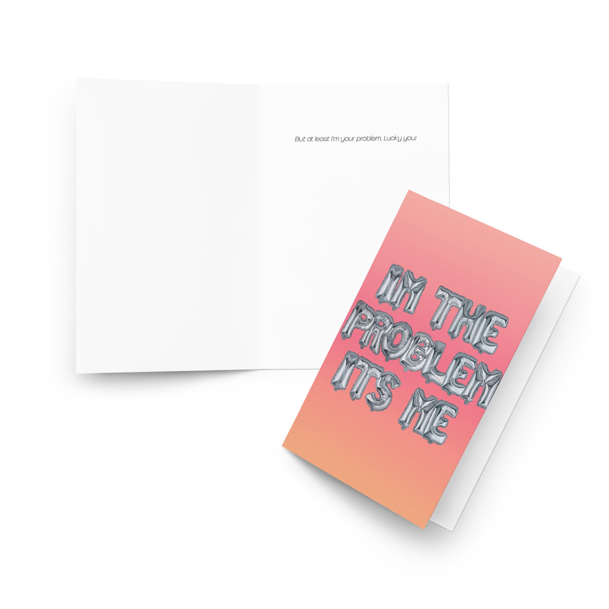 A cheeky tribute to Taylor Swift’s iconic lyric, this card embraces self-awareness with a playful twist. Whether for a fellow Swiftie or just someone who can relate to being “the problem,” it’s a fun way to own up to our lovable flaws. Inside, "But at least I'm your problem, lucky you!" seals the deal with a wink, making it the perfect card for your favorite person to annoy.